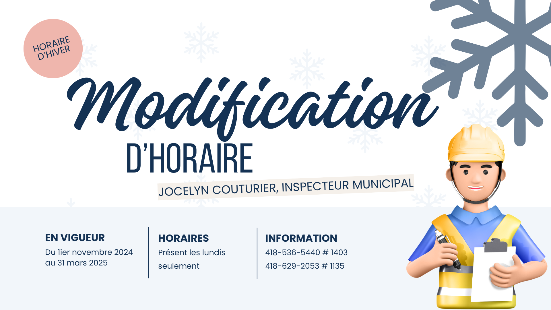 M. Couturirer est présent à la muncipalité de Sayabec tous les lundis, du 01 novembre au 30 avril
